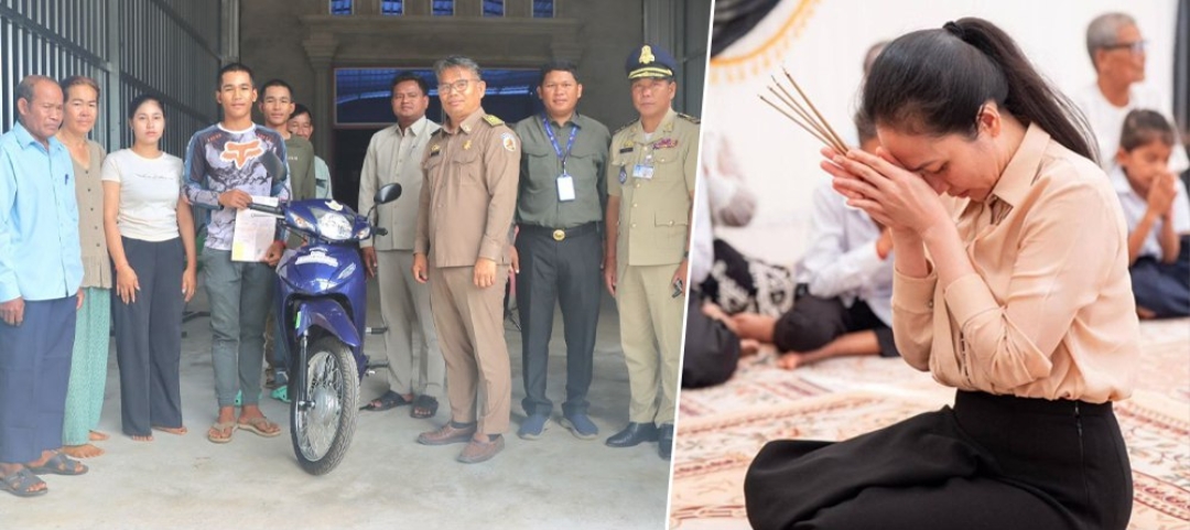 (កំពង់ឆ្នាំង)៖ រដ្ឋបាលខេត្តកំពង់ឆ្នាំងដឹកនាំដោយលោក សាន់ យូ តំណាងលោក ស៊ុន សុវណ្ណារិទ្ធិ អភិបាលខេត្តកំពង់ឆ្នាំង, លោក ហូ ប៊ុនថន ប្រធានច្រកចេញចូលរដ្ឋបាលខេត្ត និង លោកអភិបាលស្រុកកំពង់លែង រួមទាំងក្រុមការងារ នាថ្ងៃទី១០ ខែមីនា ឆ្នាំ២០២៦នេះ បាននាំយកម៉ូតូ ១គ្រឿង ដែលជាអំណោយរបស់លោកជំទាវបណ្ឌិត ពេជ ចន្ទមុន្នី ប្រគល់ជូនក្រុមគ្រួសារសពវីរយុទ្ធជនឈ្មោះលោក គង់ ចាន់វាសនា រស់នៅភូមិកែងតាសុខ ឃុំកំពង់ហៅ ស្រុកកំពង់លែង ដែលបានពលីជីវិតក្នុងសមរភូមិដើម្បីបុព្វហេតុប្រទេសជាតិ។