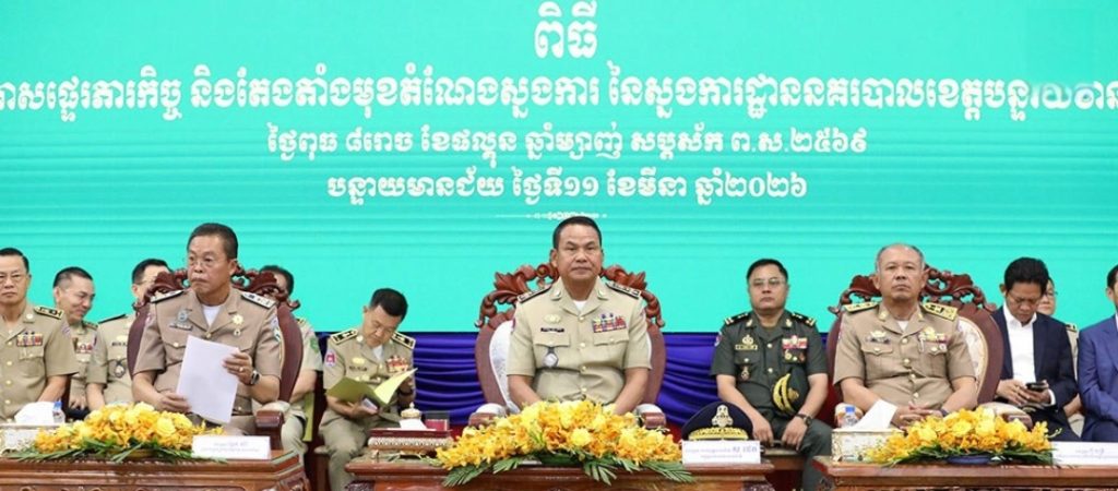 (បន្ទាយមានជ័យ)៖ នាយឧត្តមសេនីយ៍ ស ថេត អគ្គស្នងការនគរបាលជាតិ បានណែនាំស្នងការថ្មី នៃស្នងការដ្ឋាននគរបាលខេត្តបន្ទាយមានជ័យ លោកឧត្តមសេនីយ៍ត្រី សឿម សារិទ្ធ ត្រូវរក្សាសាមគ្គីផ្ទៃក្នុងអង្គភាព ពង្រឹងរបៀបរបរនៃការធ្វើការងារ និងបង្ការ ទប់ស្កាត់បទល្មើសគ្រប់ប្រទេស ពិសេស Online Scam និងការគ្រប់គ្រងជនបរទេស អនុវត្តតាមបទបញ្ជារបស់រាជរដ្ឋាភិបាល ដើម្បីធានាសន្ដិសុខ សណ្ដាប់ធ្នាប់ និងសុវត្ថិភាពជូនប្រជាពលរដ្ឋក្នុងខេត្តបន្ទាយមានជ័យឲ្យបានល្អប្រសើរ។