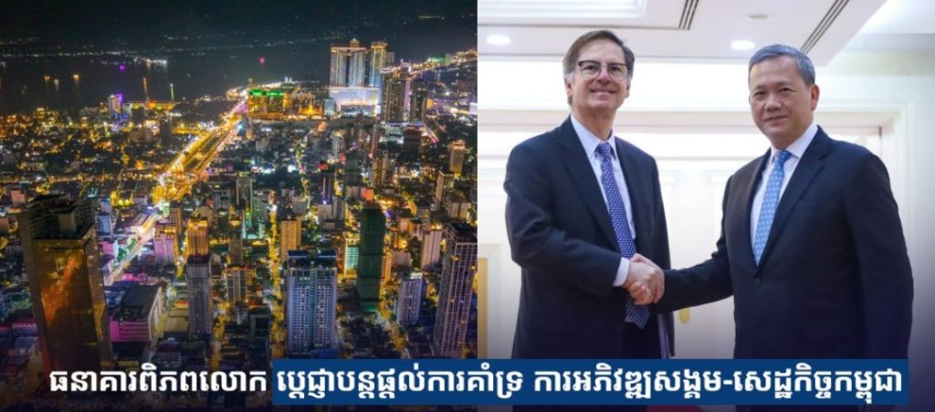 (ភ្នំពេញ)៖ ធនាគារពិភពលោក បង្ហាញការប្តេជ្ញាបន្តផ្តល់ការគាំទ្រដល់កិច្ចអភិវឌ្ឍសង្គម និងសេដ្ឋកិច្ចនៅកម្ពុជា។