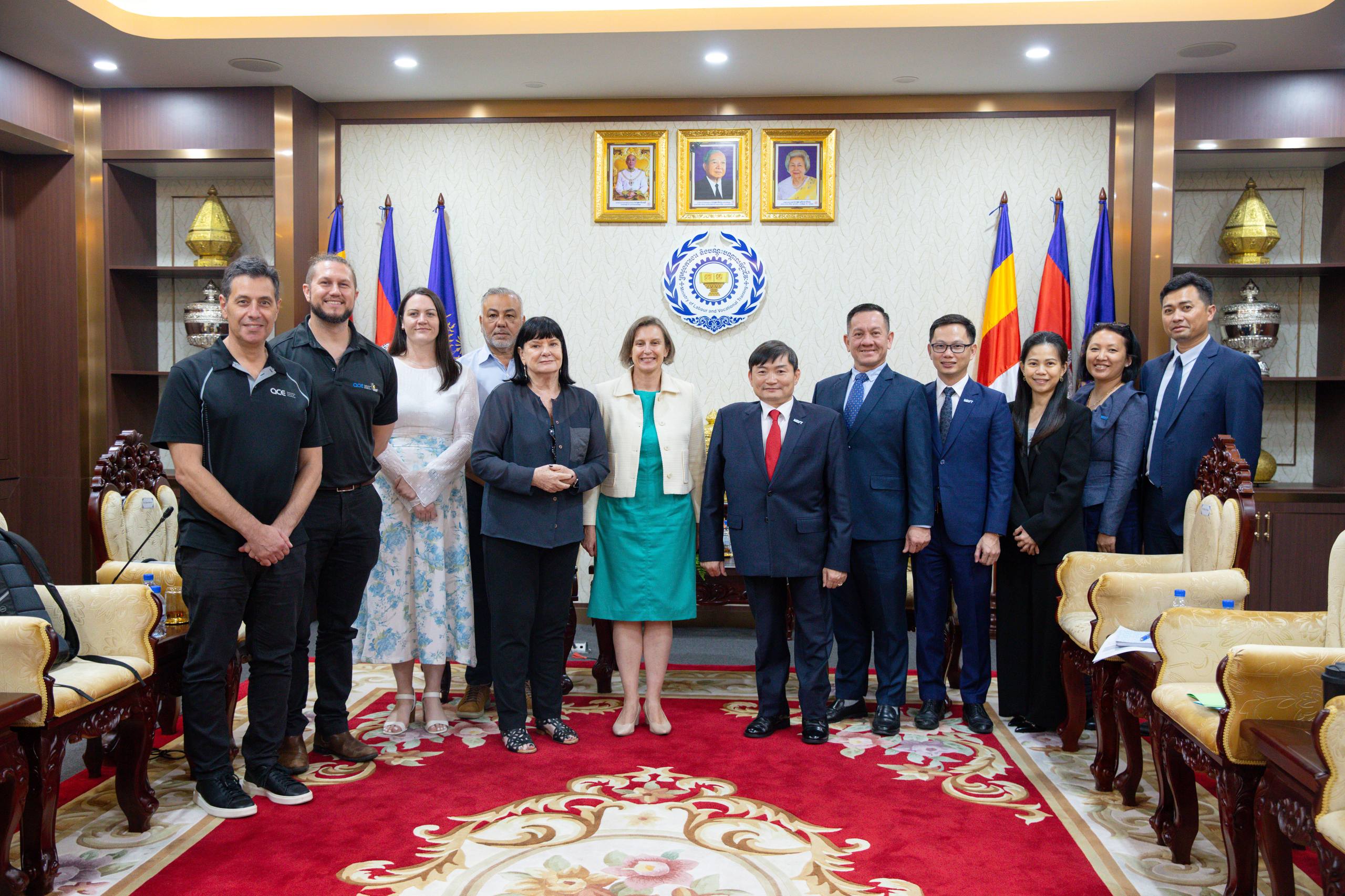 (ភ្នំពេញ)៖ បន្ទាប់ពីបានខិតខំរួមគ្នាសម្រេចបាននូវការដាក់ឱ្យដំណើរការជាផ្លូវការនូវមជ្ឈមណ្ឌលឧត្តមភាពយានយន្តកម្ពុជា (ACE Cambodia) ជាលើកដំបូង ដែលជាផ្លែផ្កានៃកិច្ចសហប្រតិបត្តិការកម្ពុជា-អូស្ត្រាលីលើការអភិវឌ្ឍជំនាញនៅកម្ពុជាកាលពីម្សិលមិញរួចមក, នារសៀលថ្ងៃអង្គារ ទី១៧ ខែមីនា ឆ្នាំ២០២៦នេះ លោក ហេង សួរ រដ្ឋមន្ត្រីក្រសួងការងារ និងបណ្ដុះបណ្ដាលវិជ្ជាជីវៈ បានទទួលជួបសម្ដែងការគួរសម និងពិភាក្សាការងារជាមួយ លោកស្រី ប្រីជែត ខូលៀរ (Bridget Collier) ភារធារីស្ថានទូតអូស្ត្រាលីប្រចាំកម្ពុជា និង លោកស្រី សារ៉ន ប៊ូរ៉ូ (Sharan Burrow) ប្រធានក្រុមប្រឹក្សានៃវិទ្យាស្ថាន Bendigo Kangan (BKI) នៅទីស្តីការក្រសួង ដើម្បីពិភាក្សាផ្លាស់ប្តូរយោបល់ក្នុងការស្វែងរកឱកាសពង្រីកកិច្ចសហប្រតិបត្តិការថ្មីៗបន្ថែមទៀត ឆ្លើយតបទៅនឹងតម្រូវការទីផ្សារការងារ ដែលវិស័យឧស្សាហកម្មនៅកម្ពុជាកំពុងមានតម្រូវការខ្ពស់។