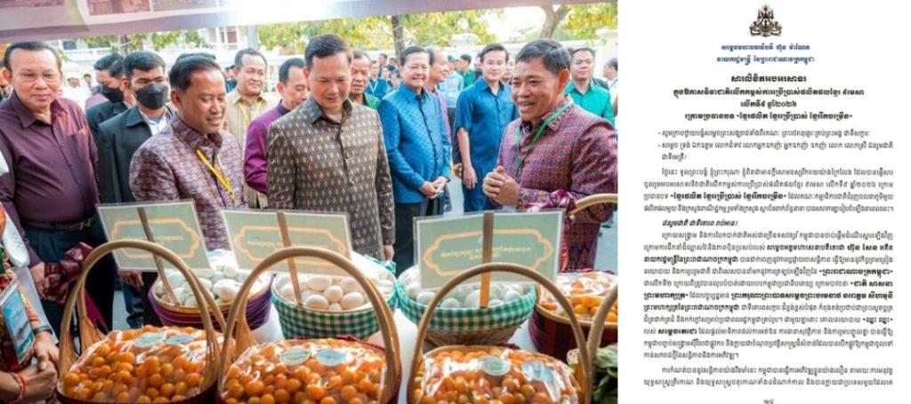 តាមរយៈសារលិខិតសម្តេចបានបញ្ជាក់ដូច្នេះថា «បច្ចុប្បន្ន យើងឃើញថា ផលិតផលក្នុងស្រុកបាន និងកំពុងក្លាយជាផលិតផល ដែលមានសក្តានុពលខ្ពស់ ក្នុងការបំពេញតម្រូវការរបស់ប្រជាពលរដ្ឋ និងទីផ្សារទូទាំងប្រទេស និងបានជំរុញឱ្យប្រជាពលរដ្ឋប្តូរឥរិយាបថ និងបង្កើនទំនុកចិត្តលើផលិតផលខ្មែរកាន់តែខ្លាំងឡើងជាបន្តបន្ទាប់។ ការប្រើប្រាស់ផលិតផលក្នុងស្រុកជំនួសផលិតផលនាំចូលពីបរទេស មិនត្រឹមតែជាការគាំទ្រដល់អ្នកផលិតខ្មែរប៉ុណ្ណោះទេ ប៉ុន្តែជាការបង្ហាញនូវមោទនភាពជាតិ និងការយល់ដឹងអំពីតម្លៃនៃផលិតផលដែលកើតចេញ ពីកម្លាំង និងចំណេះដឹងរបស់ខ្មែរ ព្រមទាំងជំរុញឱ្យមានភាពរីកចម្រើន»។