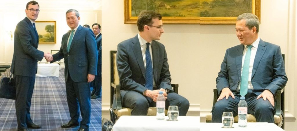 (បារាំង)៖ នៅព្រឹកថ្ងៃទី៨ ខែមេសា ឆ្នាំ២០២៦នេះ សម្តេចមហាបវរធិបតី ហ៊ុន ម៉ាណែត នាយករដ្ឋមន្ត្រីកម្ពុជា បានអនុញ្ញាតឱ្យលោក Rémi Maumont de Longevialle នាយកប្រតិបត្តិក្រុមហ៊ុន VINCI Airports ជួបសម្តែងការគួរសម និងពិភាក្សាការងារ។