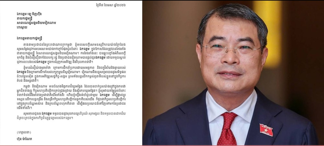 កម្ពុជា និងវៀតណាម មានចំណងមិត្តភាពដ៏យូរអង្វែង ដែលបានចាក់ឫសយ៉ាងជ្រៅក្នុងភាពជា អ្នកជិតខាងល្អ កិច្ចសហប្រតិបត្តិការគ្រប់ជ្រុងជ្រោយ និងស្ថិរភាពយូរអង្វែង។ ខ្ញុំសូមវាយតម្លៃខ្ពស់ចំពោះ ទំនាក់ទំនងដ៏រឹងមាំរវាងប្រជាជាតិយើងទាំងពីរ ហើយខ្ញុំទន្ទឹងរង់ចាំជួបជាមួយ ឯកឧត្តម ដើម្បីផ្លាស់ប្តូរ ទស្សនៈលើការបន្តពង្រឹង និងពង្រីកកិច្ចសហប្រតិបត្តិការទ្វេភាគីរបស់យើង ក៏ដូចជាកិច្ចសហប្រតិបត្តិការ នៅក្នុងក្របខ័ណ្ឌអាស៊ាន និងក្របខ័ណ្ឌពហុភាគីនានា ដើម្បីផលប្រយោជន៍ទៅវិញទៅមកនៃប្រជាជន យើងទាំងពីរ។