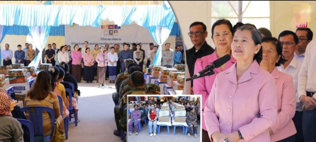 អំណោយសម្រាប់ជនភៀសសឹកព្រមទាំងក្រុមគ្រួសារវីរកងទ័ព និងវីរនគរបាលក្នុងថ្ងៃនេះមានចំនួន ៤៦៧គ្រួសារ ក្នុងមួយគ្រួសារទទួលបាន៖ អង្ករ ២៥គីឡូក្រាម ទីកសុទ្ធ ១កេស មី ១កេស ពងមាន់ ២០គ្រាប់ ឃីតមួយកញ្ចប់ ក្នុងនោះមាន៖ មុង ១ ក្រម៉ា ១ សារ៉ុង ១ សាប៊ូកក់សក់ ១ដប ច្រាសដុសធ្មេញ ៥ដើម ថ្នាំដុសធ្មេញ ១ដើម សាប៊ូដុសខ្លួន ១ដុំ សាប៊ូបោកខោអាវ ១កញ្ចប់ និងថវិកាមួយចំនួន៕