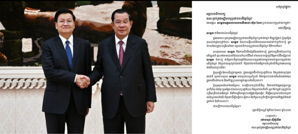ឡាវ)៖ លោក ថោងលុន ស៊ីស៊ូលីត អគ្គលេខាធិការបក្សប្រជាជនបដិវត្តន៍ឡាវ បានផ្ញើសារលិខិតថ្លែងអំណរគុណ សម្តេចតេជោ ហ៊ុន សែន ប្រធានព្រឹទ្ធសភាកម្ពុជា ដែលផ្ញើសារអបអរសាទរជូនលោក ឱកាសដែលត្រូវបានជ្រើសតាំងជា អគ្គលេខាធិការបក្សប្រជាជនបដិវត្តន៍ឡាវ នីតិកាលទី១២។