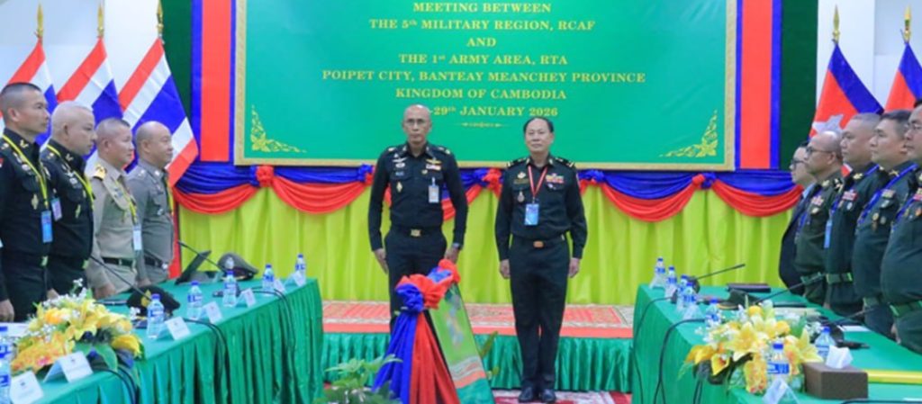 ភ្នំពេញ)៖ កិច្ចប្រជុំក្រុមលេខាធិការដ្ឋាននៃគណៈកម្មាធិការព្រំដែនថ្នាក់យោធភូមិភាគកម្ពុជា-ថៃ (RBC) យោធភូមិភាគទី៥ ភាគីកម្ពុជា និងកងទ័ពភូមិភាគទី១ ភាគីថៃ បានចាប់ផ្តើមកិច្ចប្រជុំរបស់ខ្លួនហើយ នាវេលាម៉ោង ១៤:០០នាទី រសៀលថ្ងៃទី២៧ ខែមករា ឆ្នាំ២០២៦នេះ នៅច្រកអន្តរជាតិប៉ោយប៉ែត ខេត្តបន្ទាយមានជ័យ ព្រះរាជាណាចក្រកម្ពុជា ទល់នឹងខេត្តស្រះកែវ ព្រះរាជាណាចក្រថៃ។