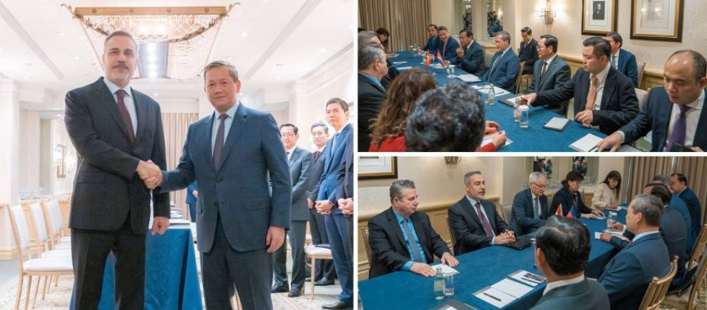 (សហរដ្ឋអាមេរិក)៖ សម្តេចបវរធិបតី ហ៊ុន ម៉ាណែត នាយករដ្ឋមន្ត្រីនៃកម្ពុជា នៅព្រឹកថ្ងៃសុក្រ ទី២០ ខែកុម្ភៈ ឆ្នាំ២០២៦ (ម៉ោងនៅអាមេរិក) បានជួបពិភាក្សាការងារជាលោក Hakan Fidan រដ្ឋមន្ត្រីការបរទេសតួកគី ក្នុងឱកាសនៃការអញ្ជើញដឹកនាំគណៈប្រតិភូជាន់ខ្ពស់រាជរដ្ឋាភិបាលកម្ពុជា ចូលរួមកិច្ចប្រជុំលើកដំបូងនៃក្រុមប្រឹក្សាសន្តិភាព (Board of Peace) នៅរដ្ឋធានីវ៉ាស៊ីនតោន សហរដ្ឋអាម៉េរិក៕