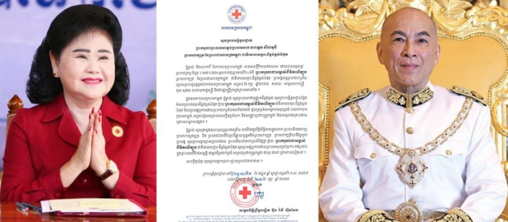 ក្នុងនាមកាកបាទក្រហមកម្ពុជា ខ្ញុំម្ចាស់ សូមព្រះបរមរាជានុញ្ញាតដ៏ខ្ពង់ខ្ពស់ ក្រាបបង្គំទូលថ្វាយថ្លែងអំណរព្រះរាជគុណដ៏ខ្ពង់ខ្ពស់បំផុត ថ្វាយ ព្រះករុណាជាអម្ចាស់ជីវិតលើត្បូង ជាទីគោរពសក្ការៈដ៏ខ្ពង់ខ្ពស់បំផុត ដែលព្រះអង្គប្រកបដោយព្រះរាជហឫទ័យទសពិធរាជធម៌ ជួយទ្រទ្រង់សកម្មភាពមនុស្សធម៌ របស់កាកបាទក្រហមកម្ពុជា សម្រាប់ជួយសម្រាល និងសង្គ្រោះប្រជារាស្ត្រកម្ពុជា ដែលទទួលរងគ្រោះដោយគ្រោះមហន្តរាយផ្សេងៗ។